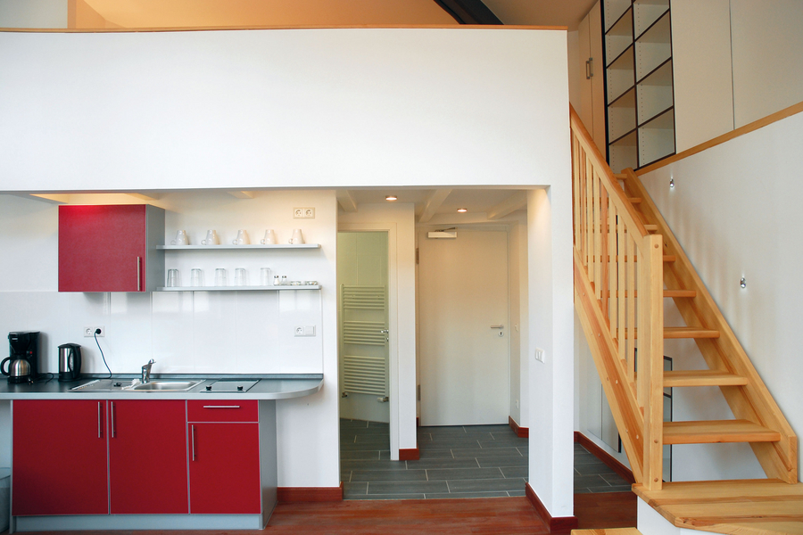 Los apartamentos son muy modernos y cómodos. Los 50 estudios están situados en la zona ajardinada del campus, directamente detrás de la escuela.
