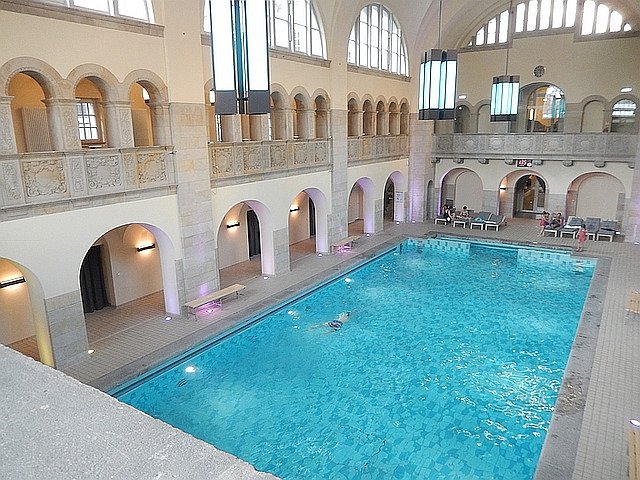 El hotel es el edificio más espectacular del campus, protegido como monumento y conocido en Berlín. El hermoso edificio de estilo neorrenacentista fue construido en 1902 como una casa de baños públicos, más sobre arquitectura e historia.