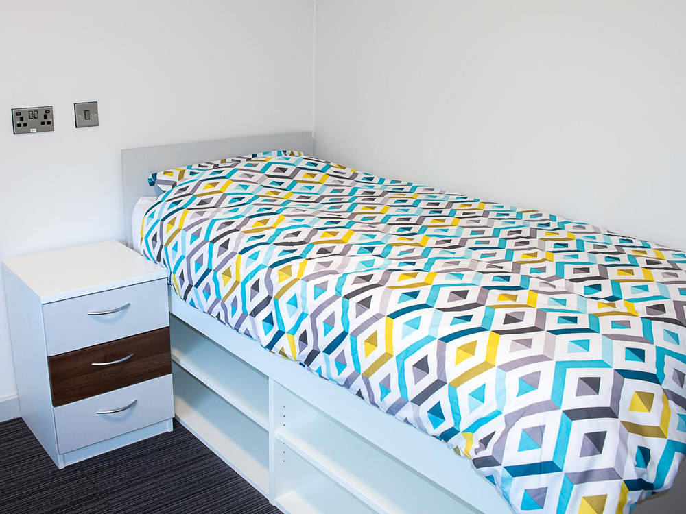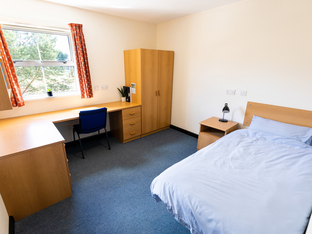 Todas las habitaciones son individuales con cuarto de baño privado y algunas están diseñadas especialmente para estudiantes discapacitados. En el precio de la matrícula se incluye el acceso a las instalaciones del gimnasio en el campus. Hay cocina común que se comparte entre seis estudiantes.