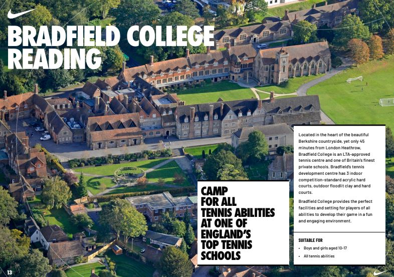 Un programa para todos los niveles de tenis. Situada en el corazón de Berkshire, a solo 45 minutos del aeropuerto de Londres, se trata de una de las mejores escuelas privadas de Inglaterra. Ofrece unas instalaciones ideales para que los jugadores de culquier nivel, disfruten y puedan aprender de manera divertida.